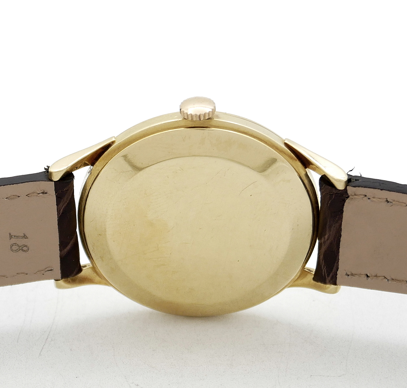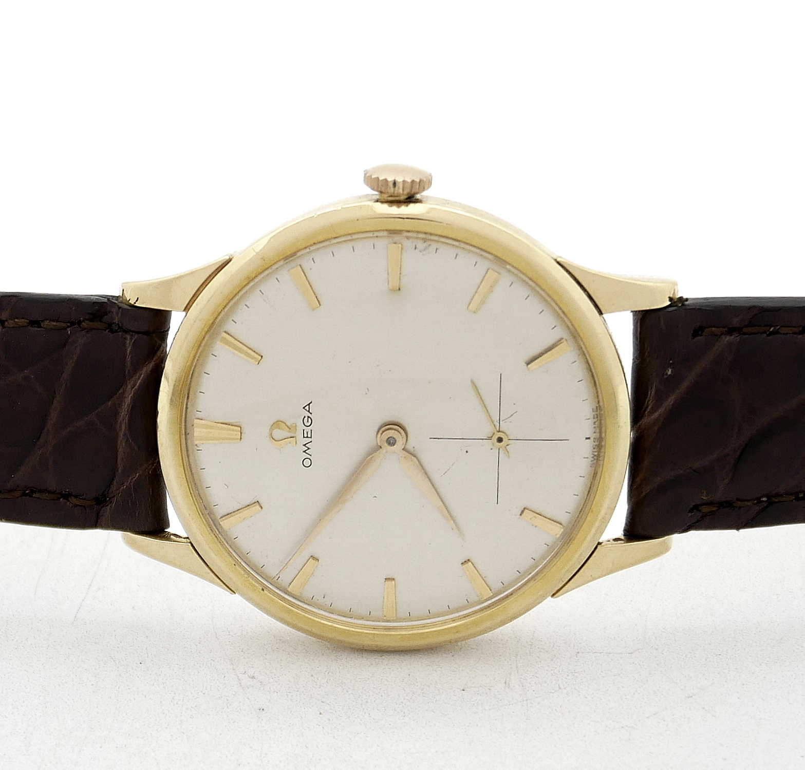 • BRACELET: Brown crocodile strap.