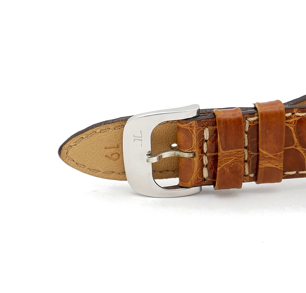 • BRACELET: Brown crocodile strap bracelet.